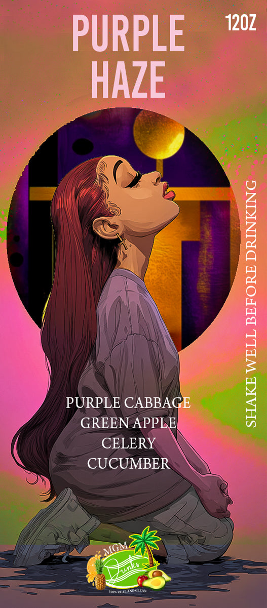 Purple Haze is a vibrant cold-pressed juice crafted to nourish your body and awaken your senses. Made with fresh purple cabbage, green apple, cucumber, and celery, this blend is rich in antioxidants, hydration, and natural detox support.